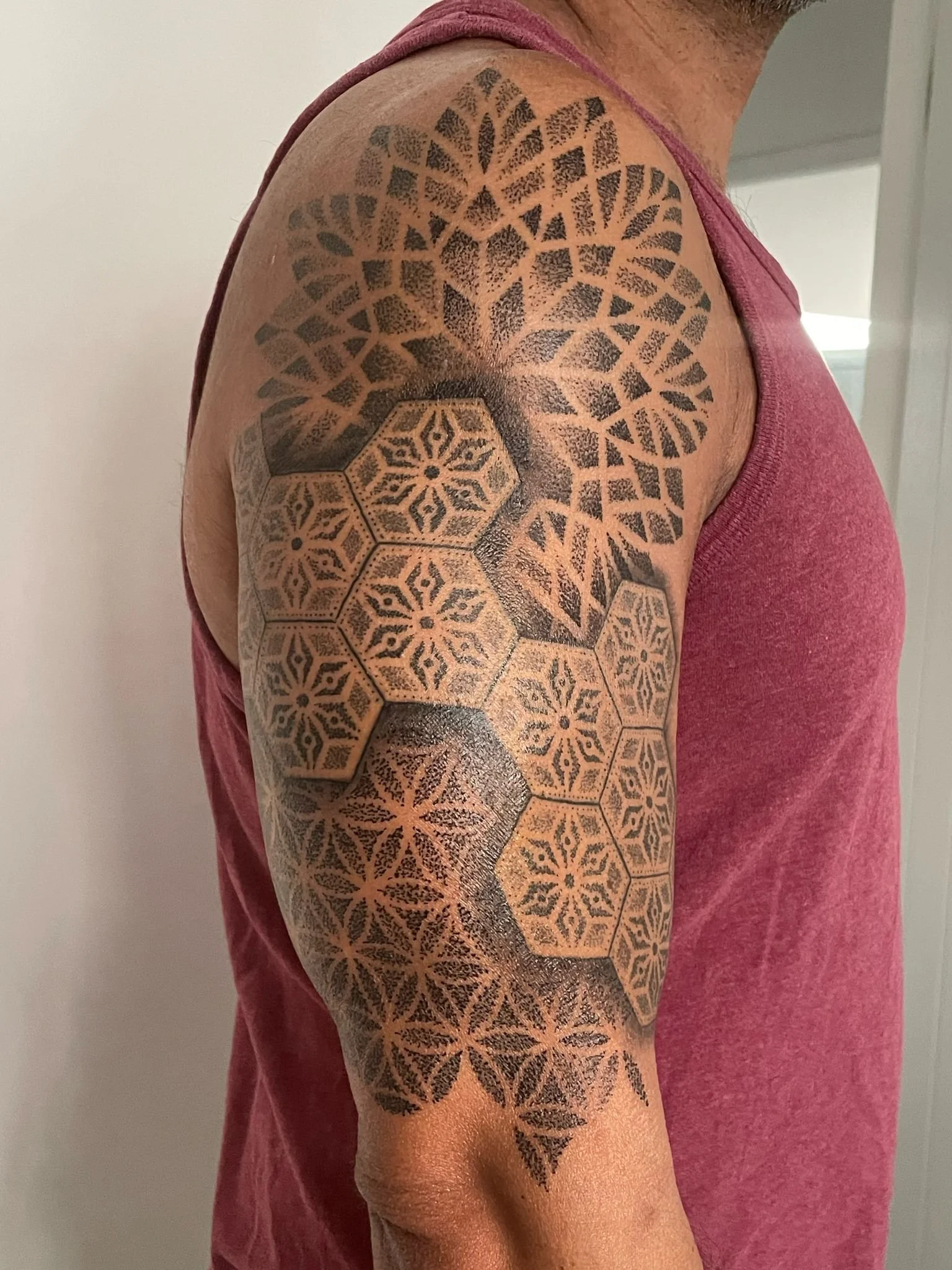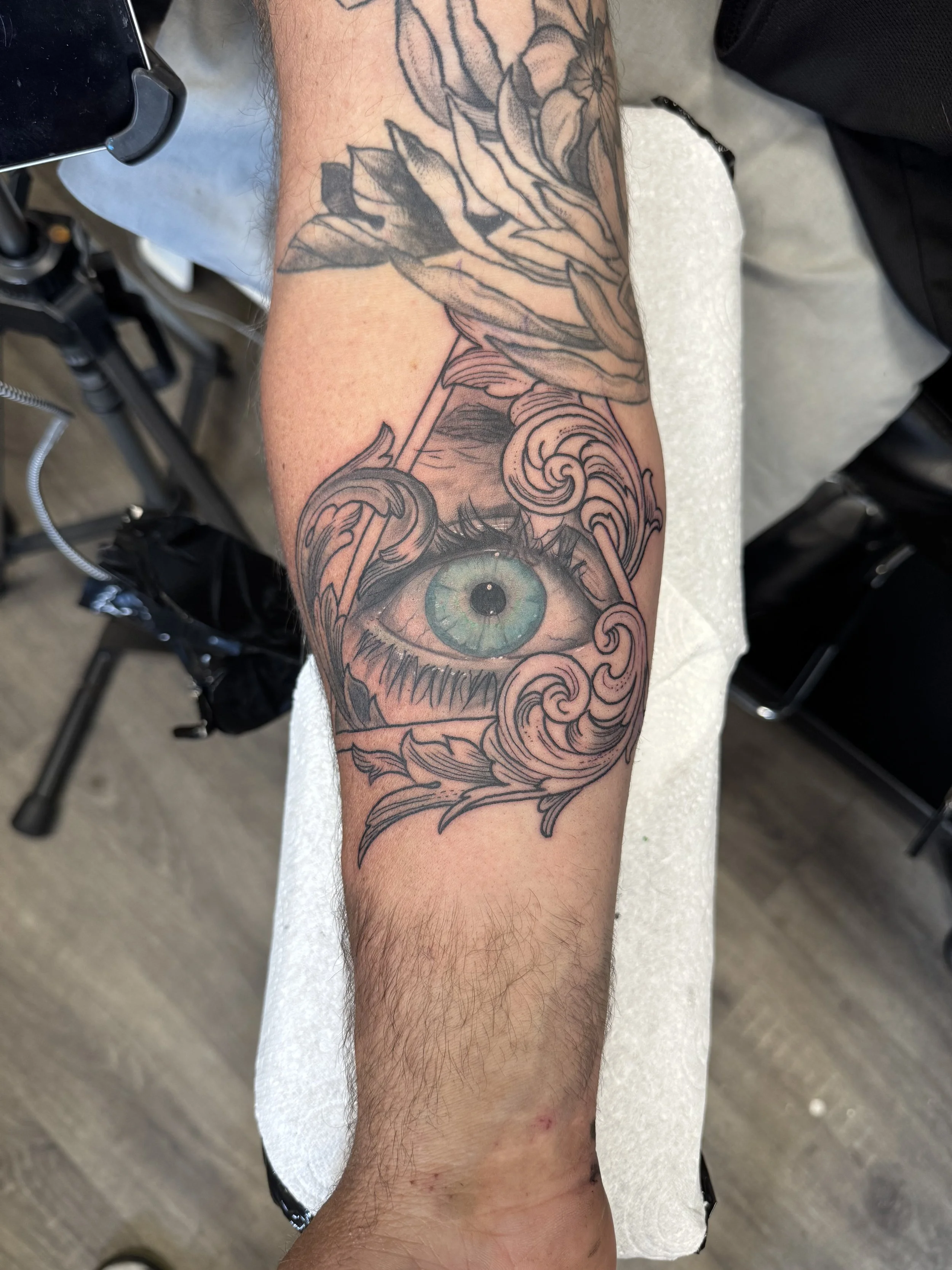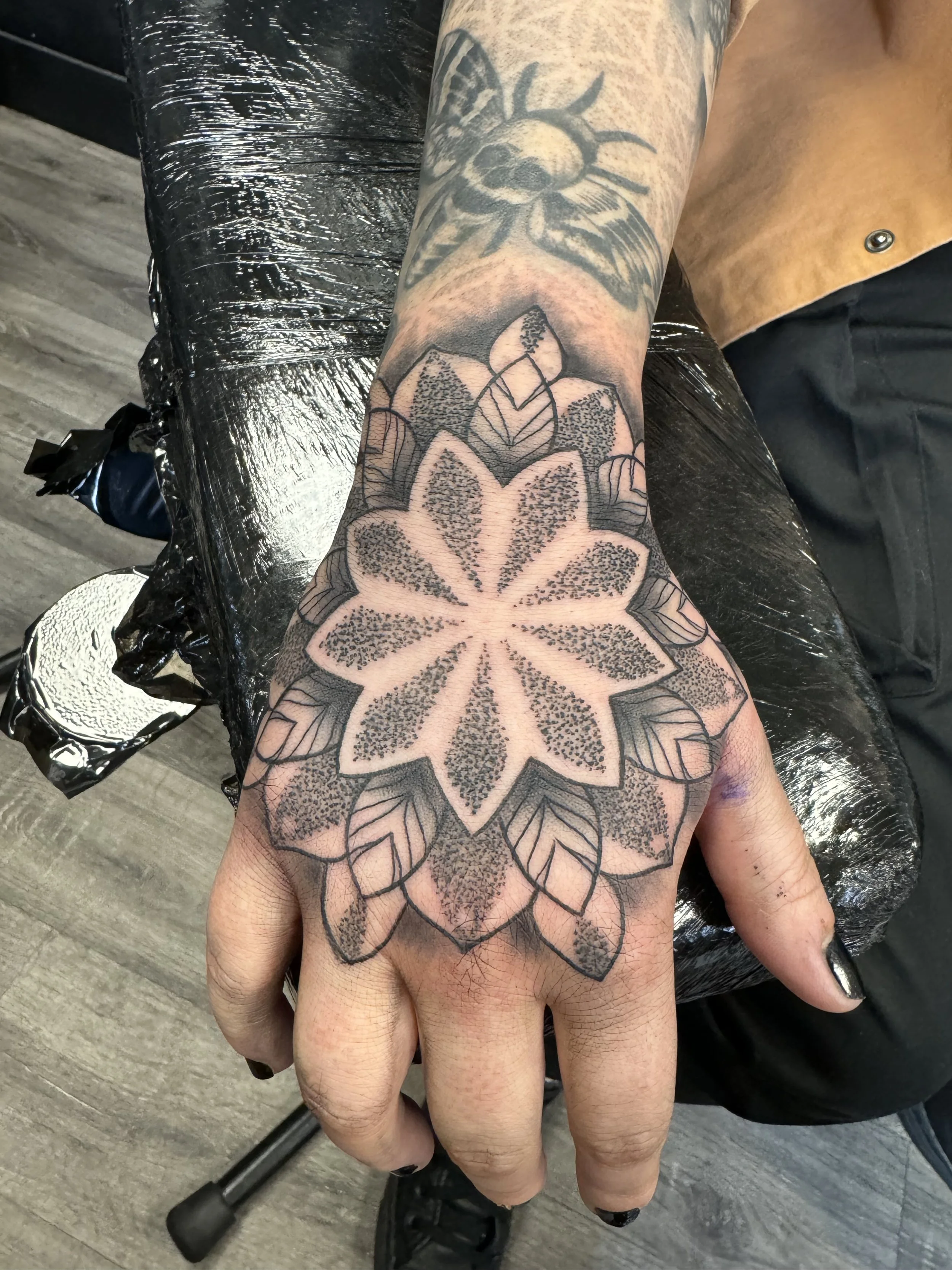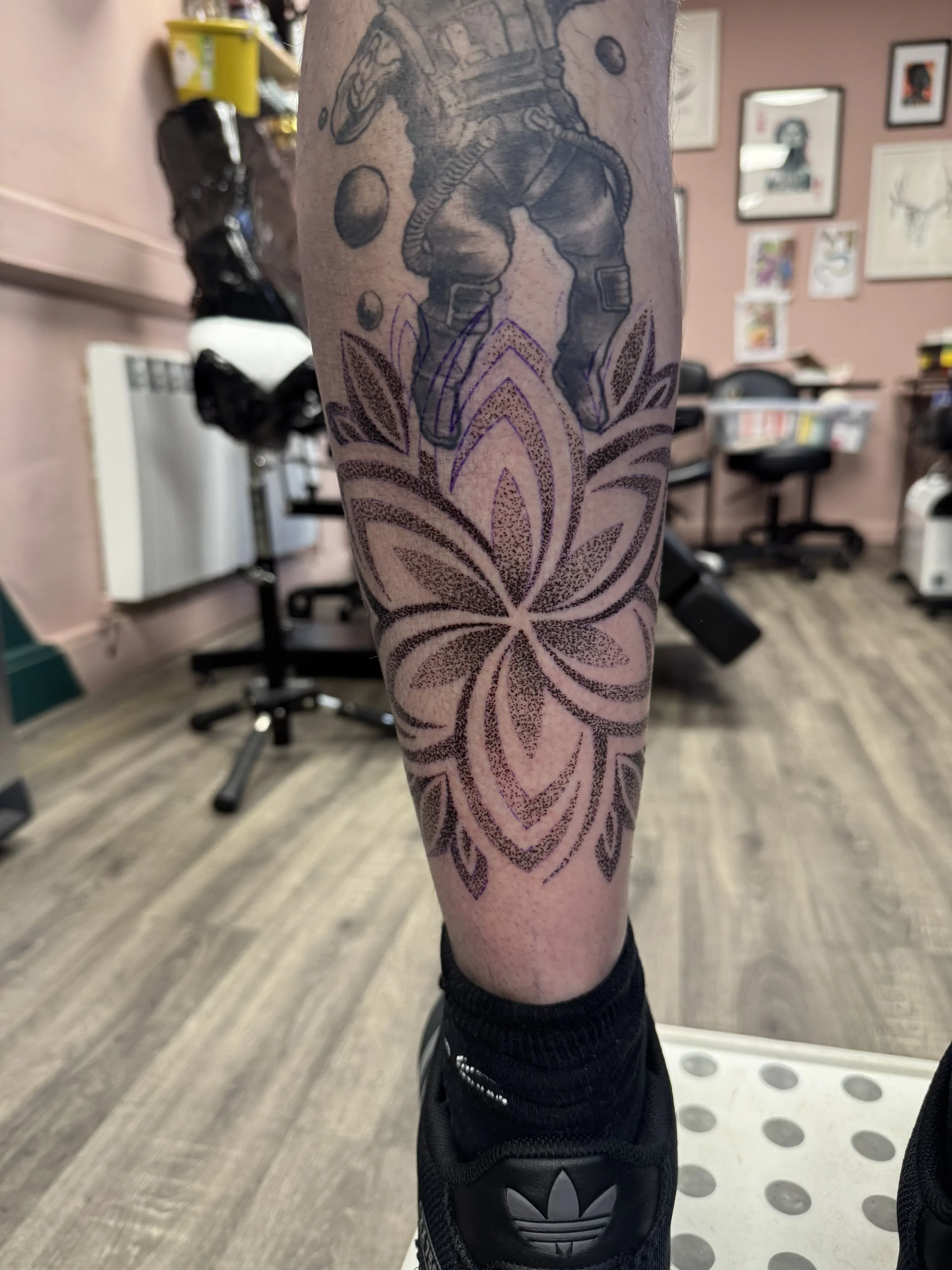 Style: Black and grey; neo-trad; mandala; traditional; dotwork